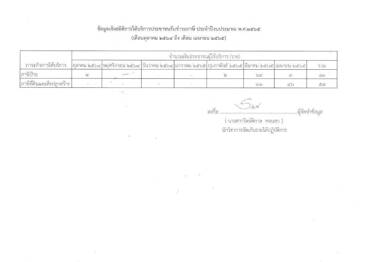 งานรับชำระภาษี เดือนต.ค. 2564-เม.ย. 2565