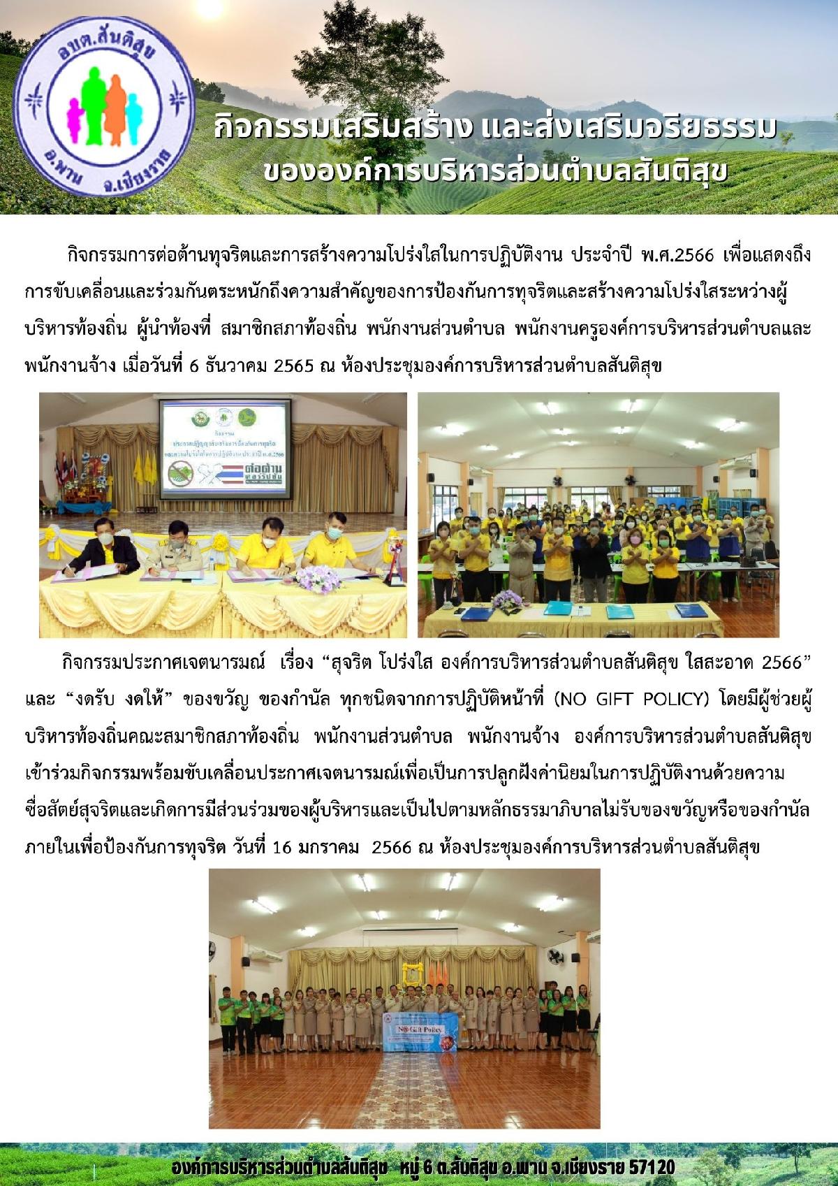 กิจกรรมเสริมสร้าง และส่งเสริมจริยธรรมขององค์การบริหารส่วนตำบลสันติสุข ประจำปี 2566
