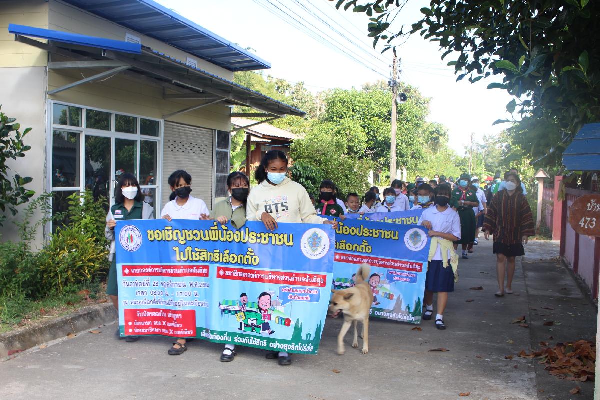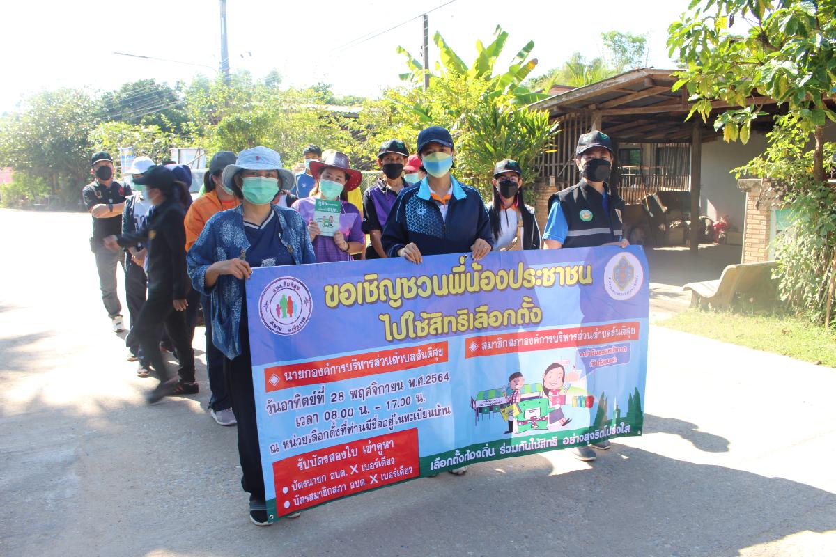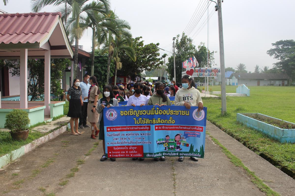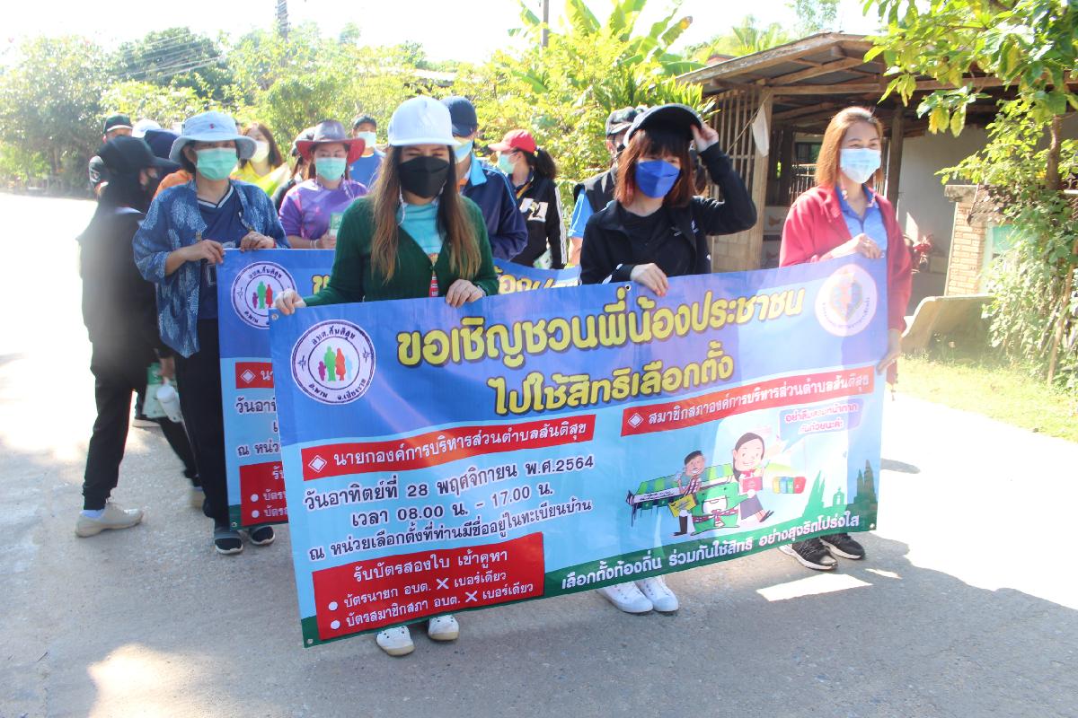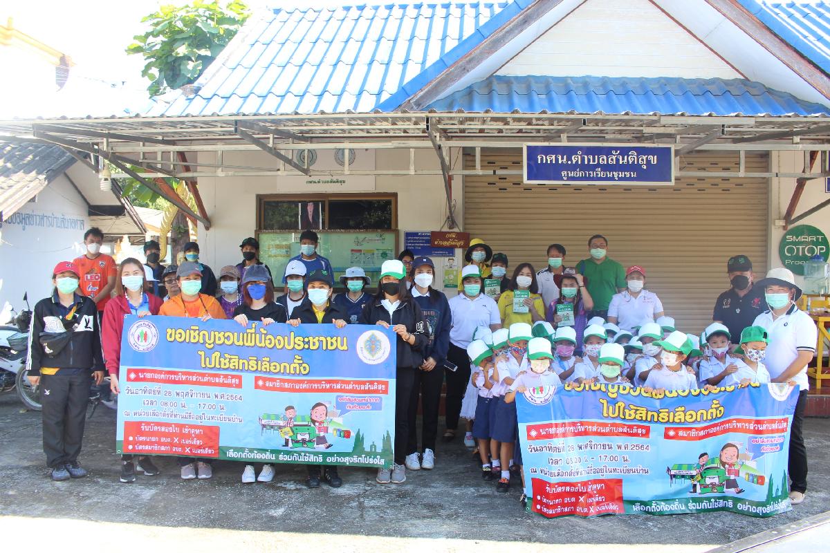 องค์การบริหารส่วนตำบลสันติสุข ร่วมกับโรงเรียนบ้านเหมืองง่า เดินรณรงค์เชิญประชาชนออกมาใช้สิทธิเลือกตั้ง สมาชิกสภา อบต.สันติสุข และ นายก อบต.สันติสุข ในวันที่ 28 พฤศจิกายน พ.ศ.2564 เวลา 08.00 น. - 17.00 น. โดยบุคลากรทางการศึกษา ครู นักเรียน และเจ้าหน้าที่องค์การบริหารส่วนตำบลสันติสุข ได้เดินรณรงค์ตั้งแต่ บ้านเหมืองง่า หมู่ที่ 6 และ บ้านโชคชัย หมู่ที่ 8 และ องค์การบริหารส่วนตำบลสันติสุข ร่วมกับโรงเรียนองค์การบริหารส่วนตำบลสันติสุข เดินรณรงค์เชิญประชาชนออกมาใช้สิทธิเลือกตั้ง สมาชิกสภา อบต.สันติสุข และ นายก อบต.สันติสุข ในวันที่ 28 พฤศจิกายน พ.ศ.2564 เวลา 08.00 น. - 17.00 น. โดยบุคลากรทางการศึกษา ครู นักเรียน และเจ้าหน้าที่องค์การบริหารส่วนตำบลสันติสุข ได้เดินรณรงค์ ณ บ้านสันกอตาล หมู่ที่ 5