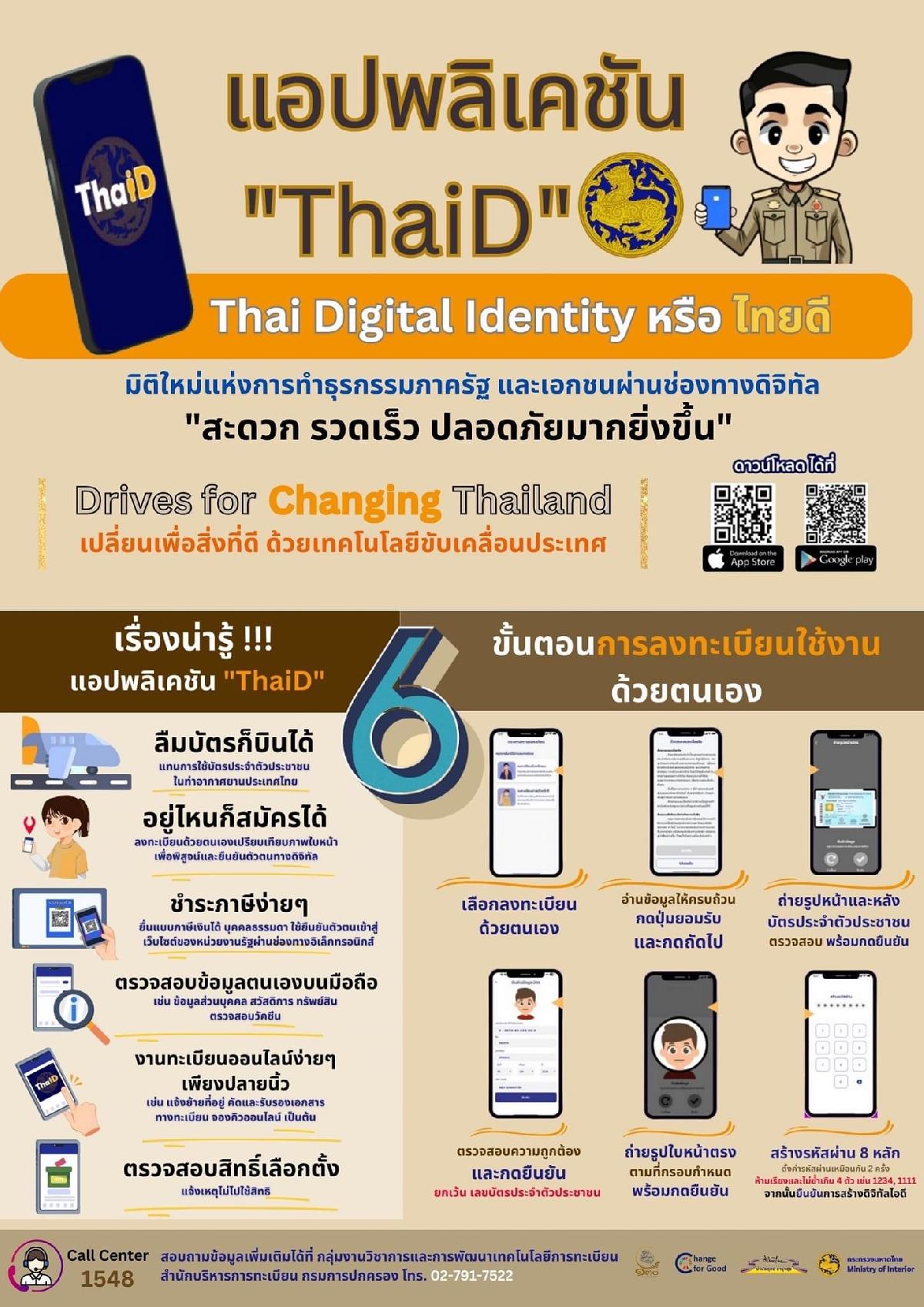 ประชาสัมพันธ์ประชาชนที่มีสมาร์ทโฟนและบัตรประจำตัวประชาชนลงทะเบียน app ThaiD ตามแนวทางที่แนบข้างล่างนี้