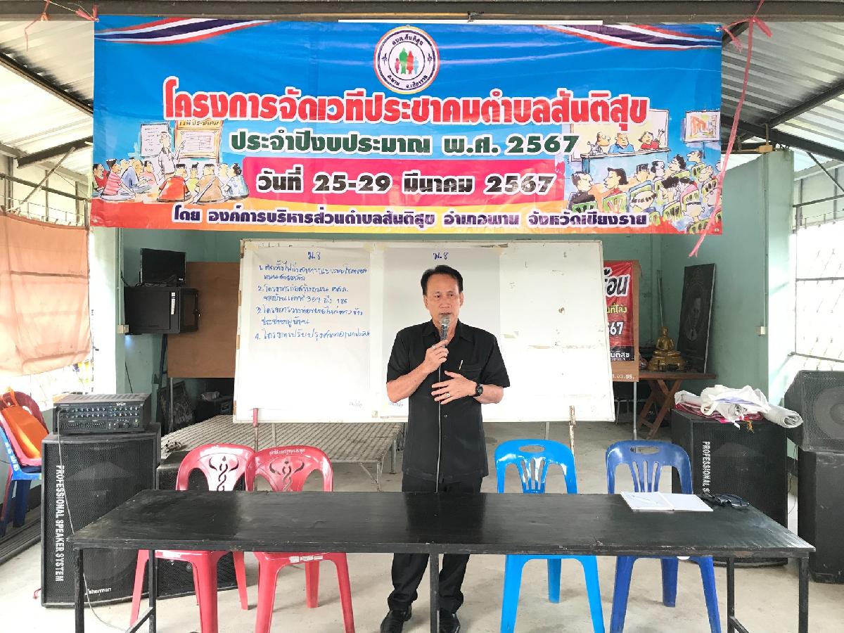 วันที่ 25 - 29 มีนาคม 2567 องค์การบริหารส่วนตำบลสันติสุข ได้ดำเนินการจัดเวทีประชาคมในตำบลสันติสุข รวมจำนวน 9 หมู่บ้าน โดยมีวัตถุประสงค์เพื่อจัดทำแผนชุมชน เพื่อแก้ไขปัญหาความเดือดร้อนของประชาชน ให้บรรลุเป้าหมายตามภารกิจและอำนาจหน้าที่ขององค์การบริหารส่วนตำบลสันติสุข ซึ่งองค์องค์การบริหารส่วนตำบลสันติสุข ได้บรรจุโครงการ/กิจกรรมที่ผ่านกระบวนการของการมีส่วนร่วม ของประชาชน การพัฒนาทุกภาคส่วน