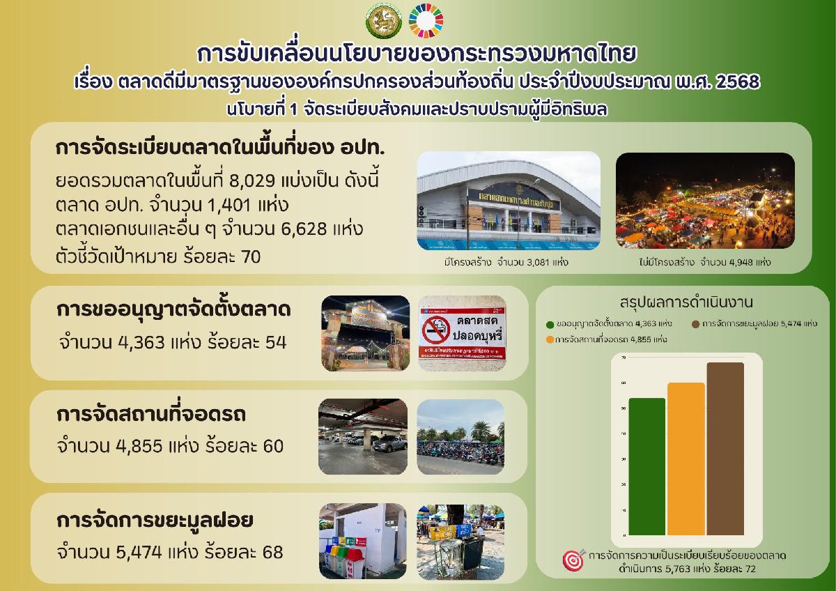 ประชาสัมพันธ์ผลการดำเนินงานการขับเคลื่อนนโยบายของกระทรวงมหาดไทย เรื่อง ตลาดดีมีมาตรฐานของ อปท.ประจำปีงบประมาณ พ.ศ.2568