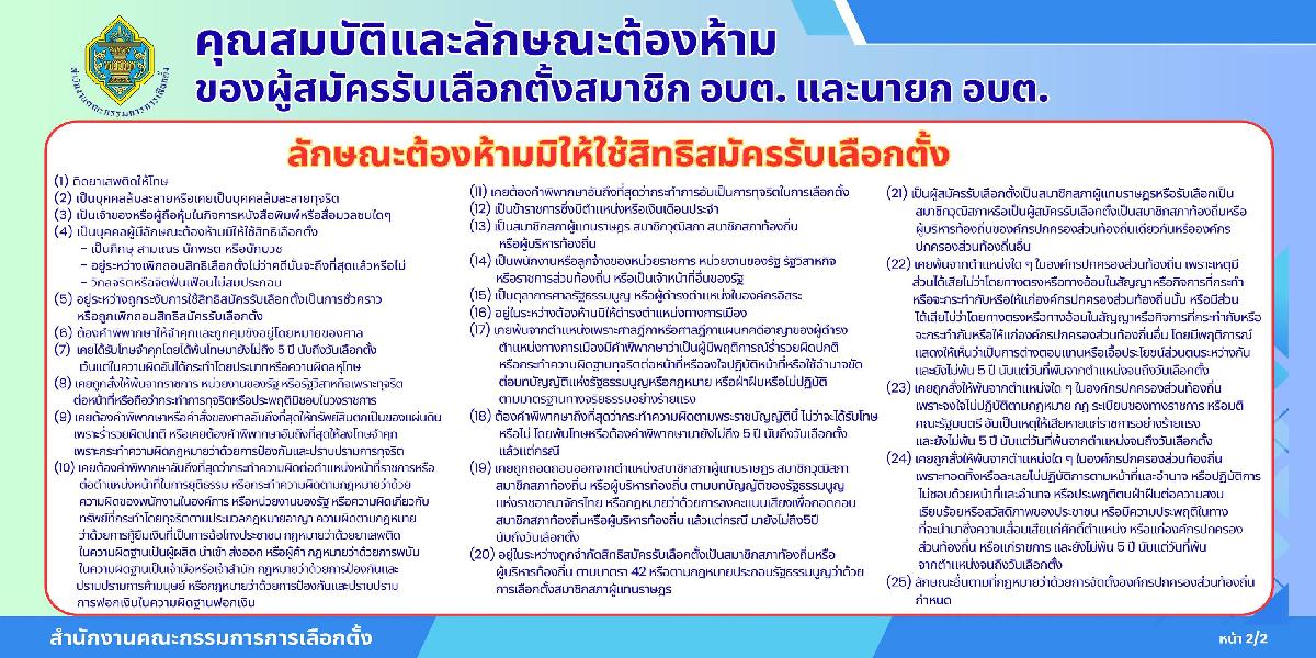 ประชาสัมพันธ์คุณสมบัติและลักษณะต้องห้ามของผู้สมัครสมาชิกสภาองค์การบริหารส่วนตำบลและนายกองค์การบริหารส่วนตำบล