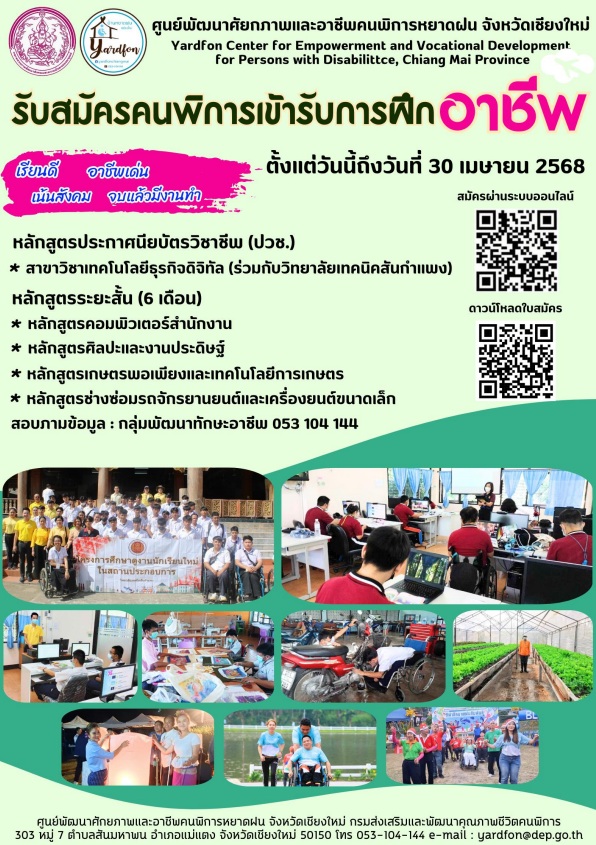 ประชาสัมพันธ์รับสมัครคนพิการเข้สรับการฝึกอาชีพประจำปี 2568 ภาคเรียนที่ 2