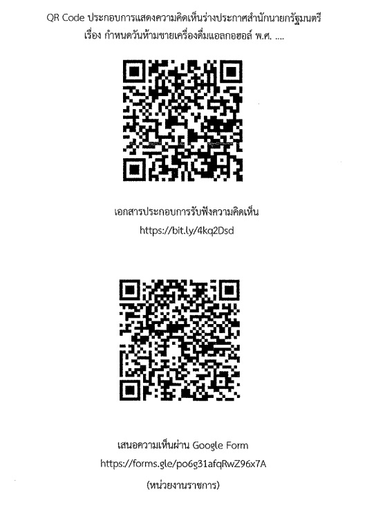 ขอเชิญร่วมแสดงความคิดเห็นร่างประกาศสำนักนายกรัฐมนตรี เรื่อง กำหนดวันห้ามขายเครื่องดื่มแอลกอฮอล์ พ.ศ. ...